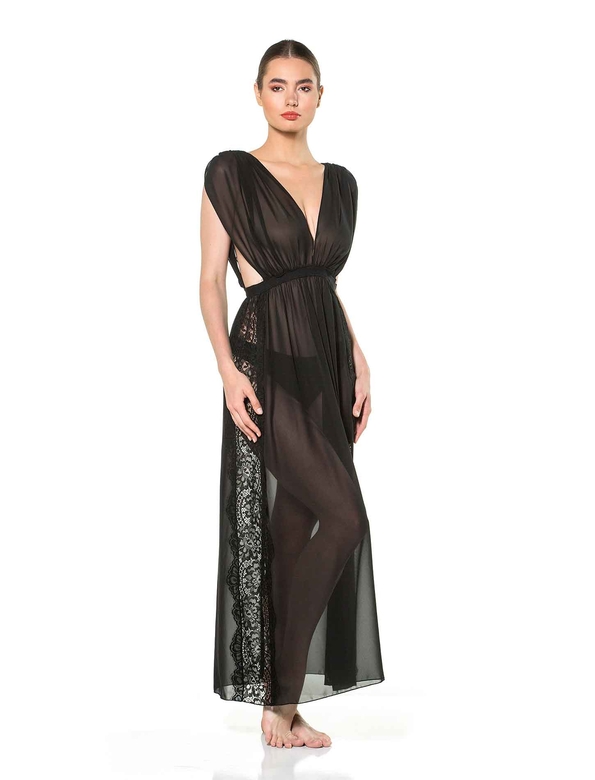 AMAYA LONG NIGHTWEAR & ROBE SET BLACK