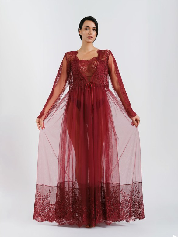 AMAYA LONG NIGHTWEAR & ROBE SET BURGUNDY